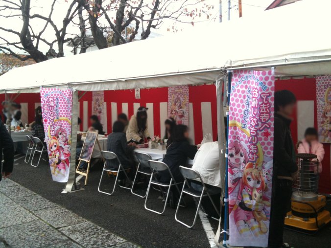 ↓入り口に立てられたのぼり。メイドカフェ宣伝用。
