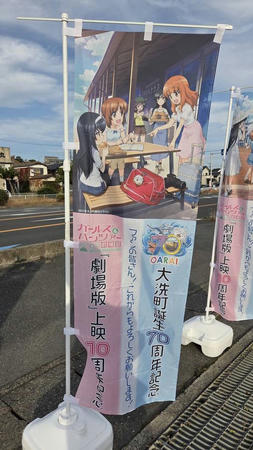 大洗町70周年とガルパン劇場版10周年を同じのぼりに入れるとは。