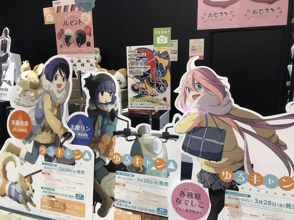 話題のゆるキャン△。同日開催のモーターサイクルショーで志摩リンちゃんが乗るVinoが展示されているという誘導あり。プチコラボ感が良いですね。