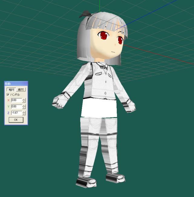 キャラクターは東方Projectの魂魄妖夢。4頭身くらい。