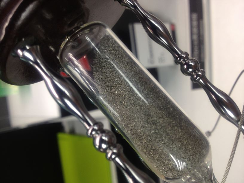 ロームの極小チップ抵抗を入れた砂時計。砂時計というかチップ抵抗時計。