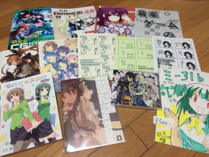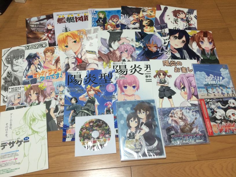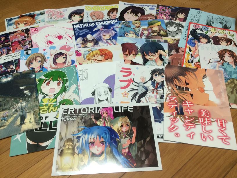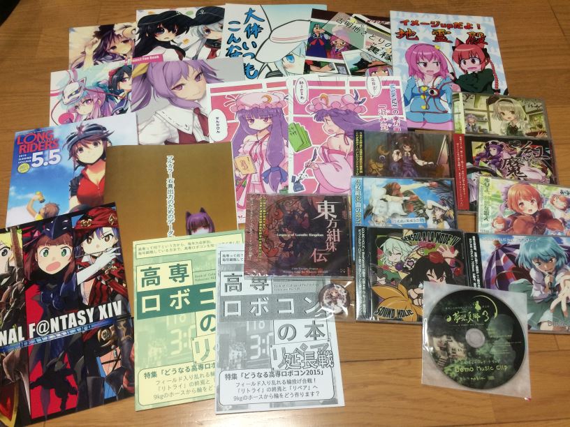 午前中は主に買い物をさせてもらっていましたが、東方Project、艦これの他、ゲーム(電源不要)や評論・情報、鉄道・旅行・メカミリもあり、見て回るのに忙しかったですね。