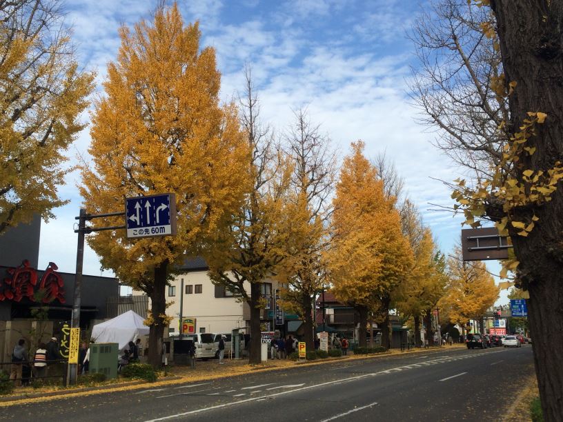 甲州街道沿いのいちょう並木。高尾寄りではこのように黄葉が綺麗でした。