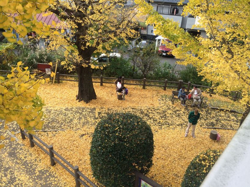 また、いちょうの木の黄葉も見事なもので、見上げても綺麗なら、落ち葉によって一面黄色い絨毯になっている沿道の公園も風情があって良いものですね。
