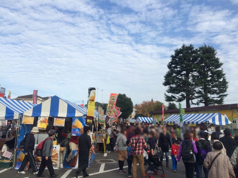 いちょう祭りのメインとなる会場は、中央線の旧東浅川駅があった場所の広場から多摩御陵へ至る多摩御陵線の一帯で、物産展の屋台が所狭しと並んでいます。(旧東浅川駅があった場所は、西八王子駅と高尾駅の間のやや高尾よりの辺り。)