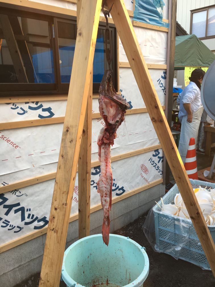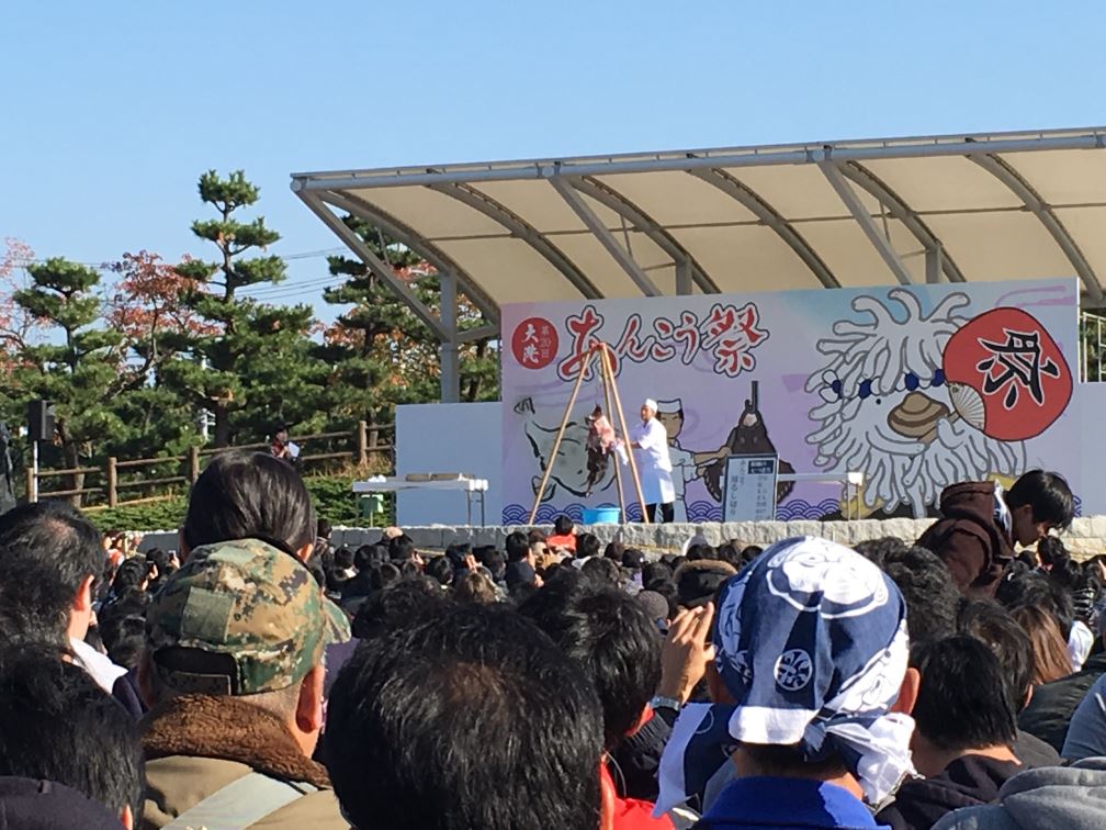 あんこう吊るし切り披露。遠かったので鮮明には撮れず。
