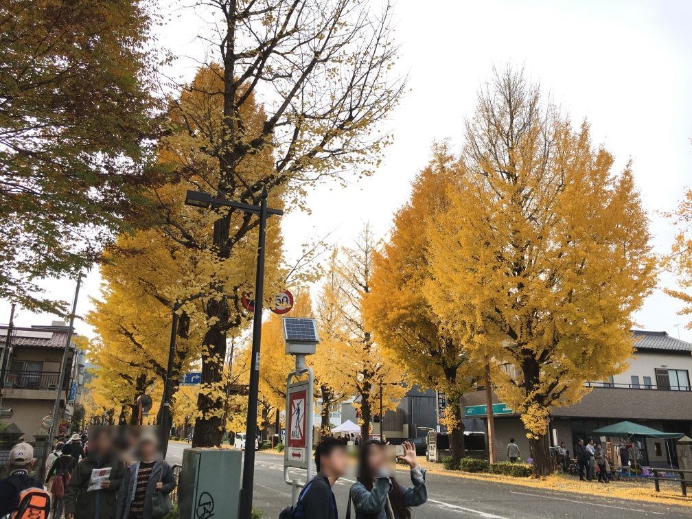 オリエンテーリングのコースになっている甲州街道はいちょう並木が続いているので、今の時期は黄葉が非常に綺麗です。そんな風景も楽しみながら歩くことができます。