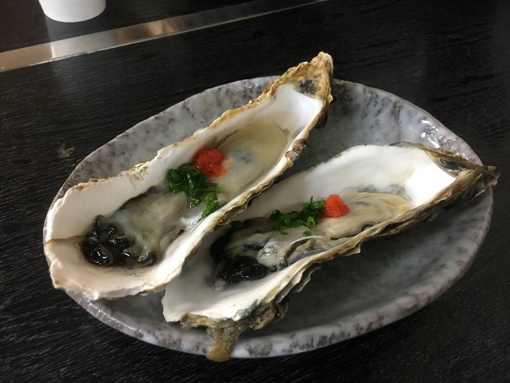 18日夕飯その1。久しぶりの生ガキ。美味し。