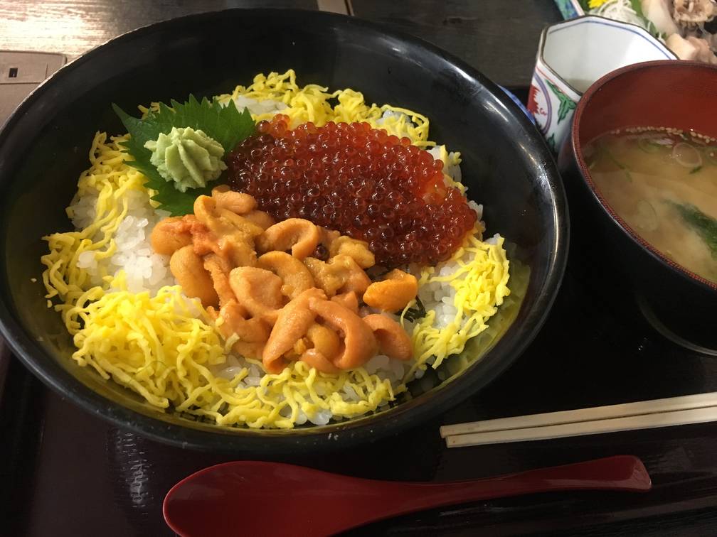 18日夕飯その2。うにいくら丼。美味し。