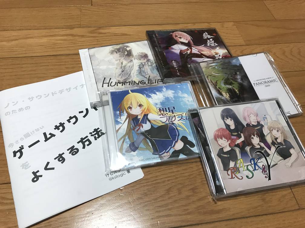 最近のお気に入りは、HUMMING LIFEさん、木製みゅーとさん、桜ノ咲音響産業さん、RASKさん、SYMPHONIC CITYさんなど。唯一の冊子は、知り合いさんのサークルの出し物の一部でした。