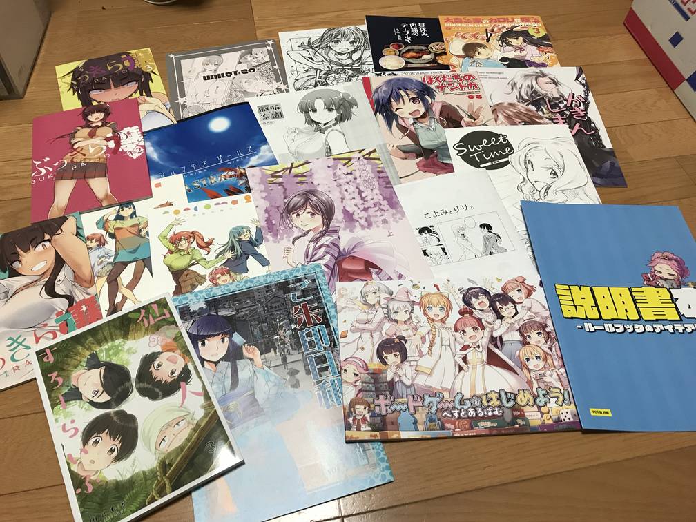 今回の購入物。コミティア、ゲームマーケット両方。(といってもゲームマーケットで購入したのは右下の2冊だけですが。)