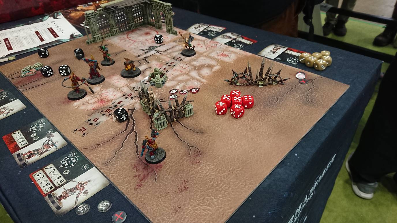 企業ブース「GamesWorkshop日本支社」、ウォーハンマーAOS WARCRYの展示です。