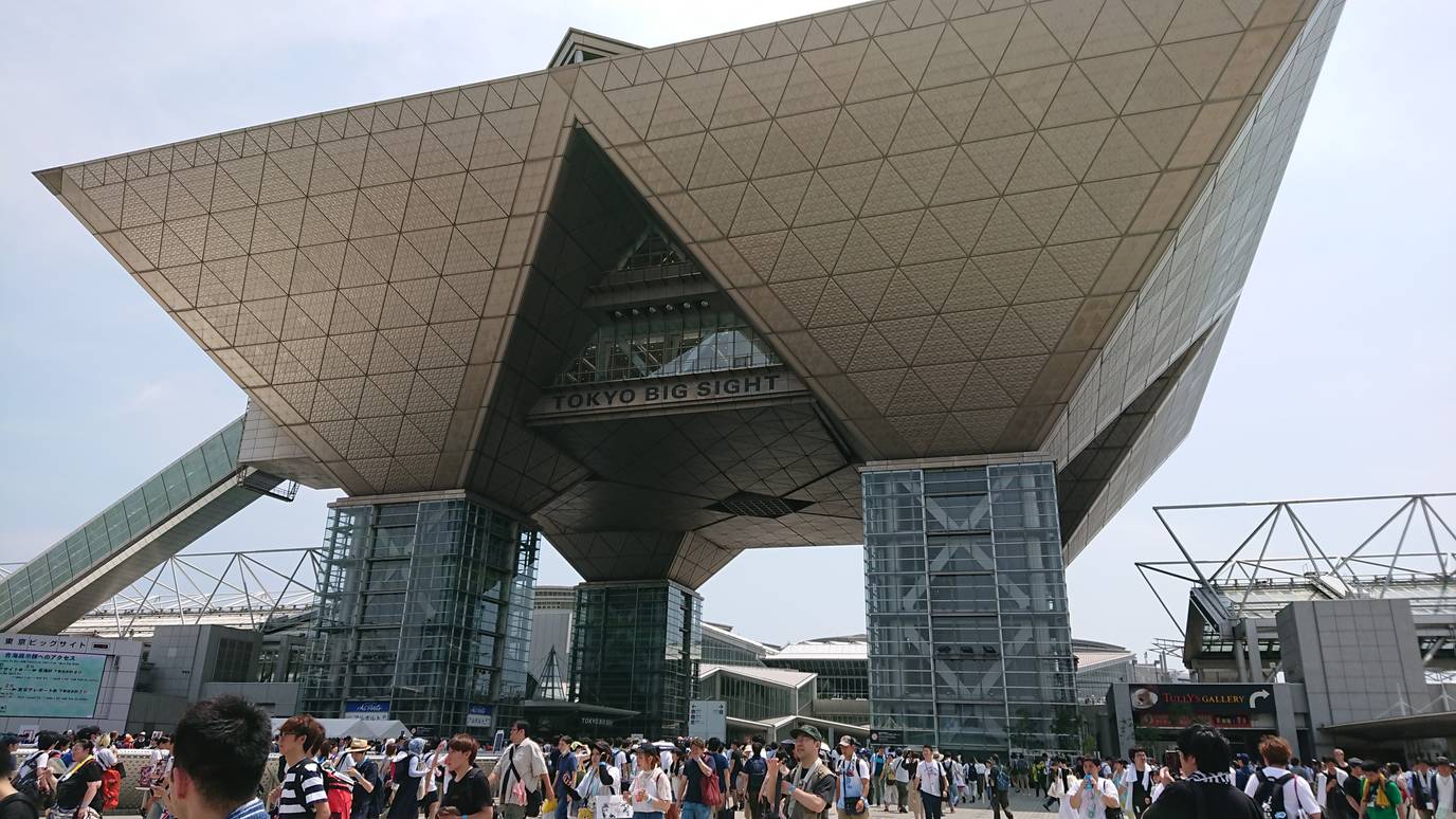 2日目昼過ぎ、猛暑の中にそびえたつビッグサイト。