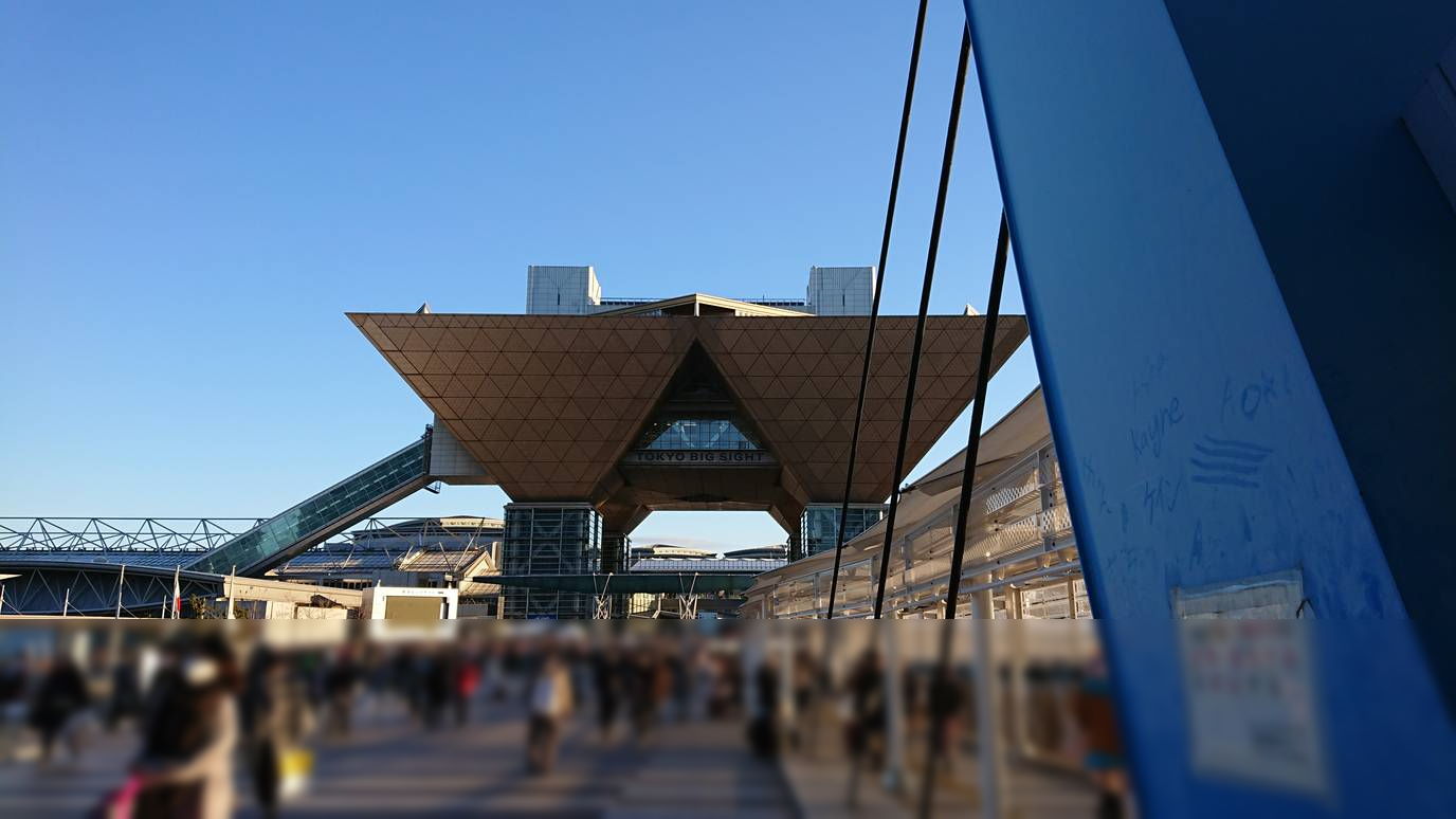 1日目の終了時間ごろ。冬空にそびえるビッグサイト。