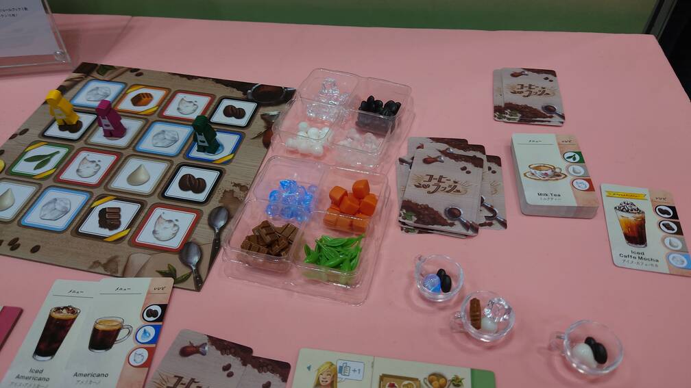 コーヒーラッシュというバリスタがテーマのゲーム。材料のミニチュアをカップに入れるのが可愛いですね。これはコンポーネントに一目惚れしたので購入しました。