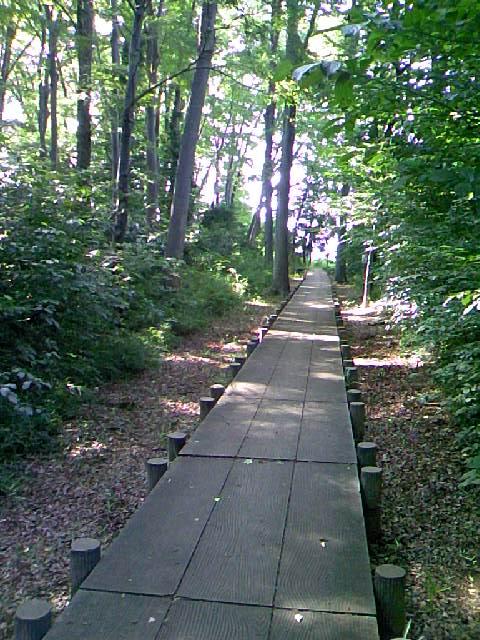 右:とある公園の遊歩道。差し込む光が素敵。