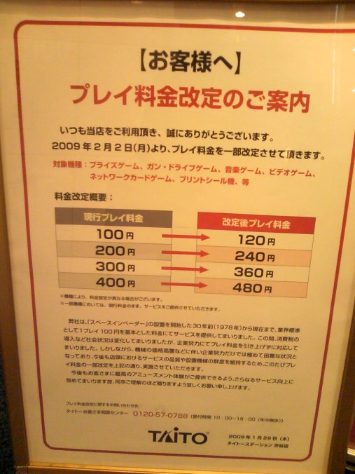 タイトーがゲームセンターの一部店舗で20%の値上げに踏み切る