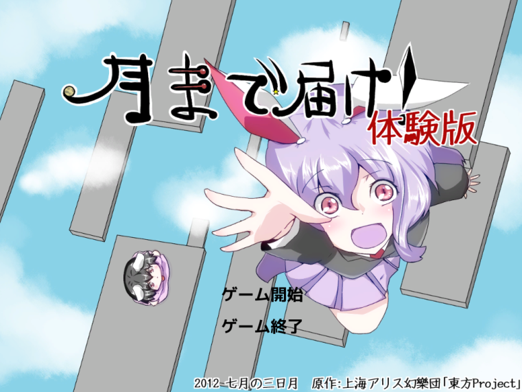 うどんげが月を目指してどんどん昇っていくゲームとなっています。